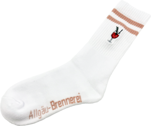 Trendige Sportsocken – Johannis-Rosmarin-Spritz Edition Stylishe, weiße Sportsocken mit hochwertiger Stickerei unseres beliebten Johannis-Rosmarin-Spritz. An der Fußsohle mit Allgäu-Brennerei Schriftzug. Bequem, langlebig und absolut im Trend – das perfekte Accessoire für alle Fans unseres Aperitifs. Farbe: Weiß Material: Hochwertige Baumwollmischung 78 % Baumwolle 17 % Polyester 2 % Polyamid 3 % Elasthan Mach dein Outfit spritzig!